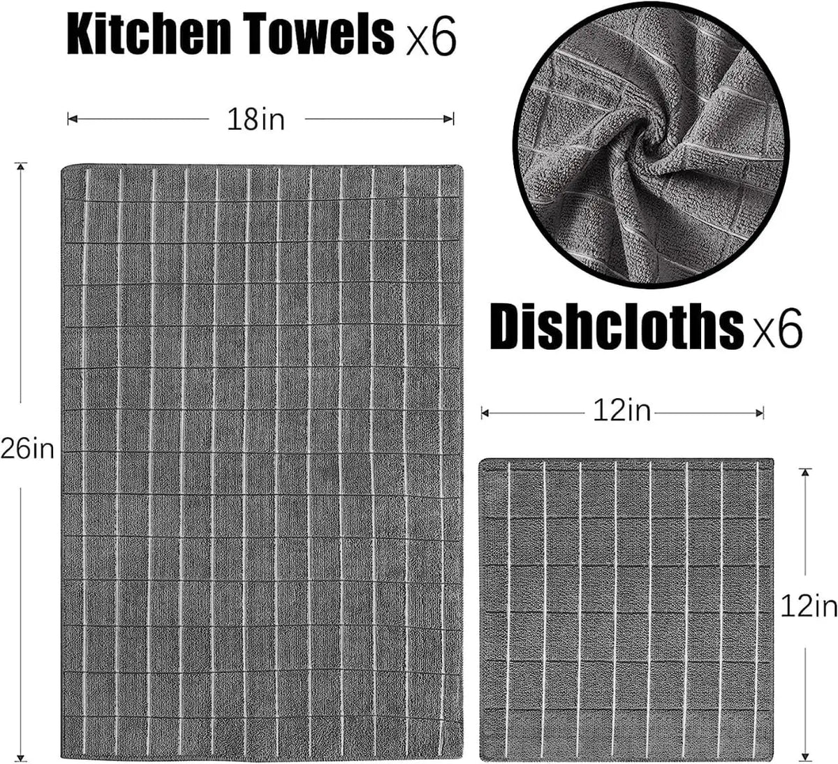 12pcs Microfiber Kitchen Towels and Dishcloths Set